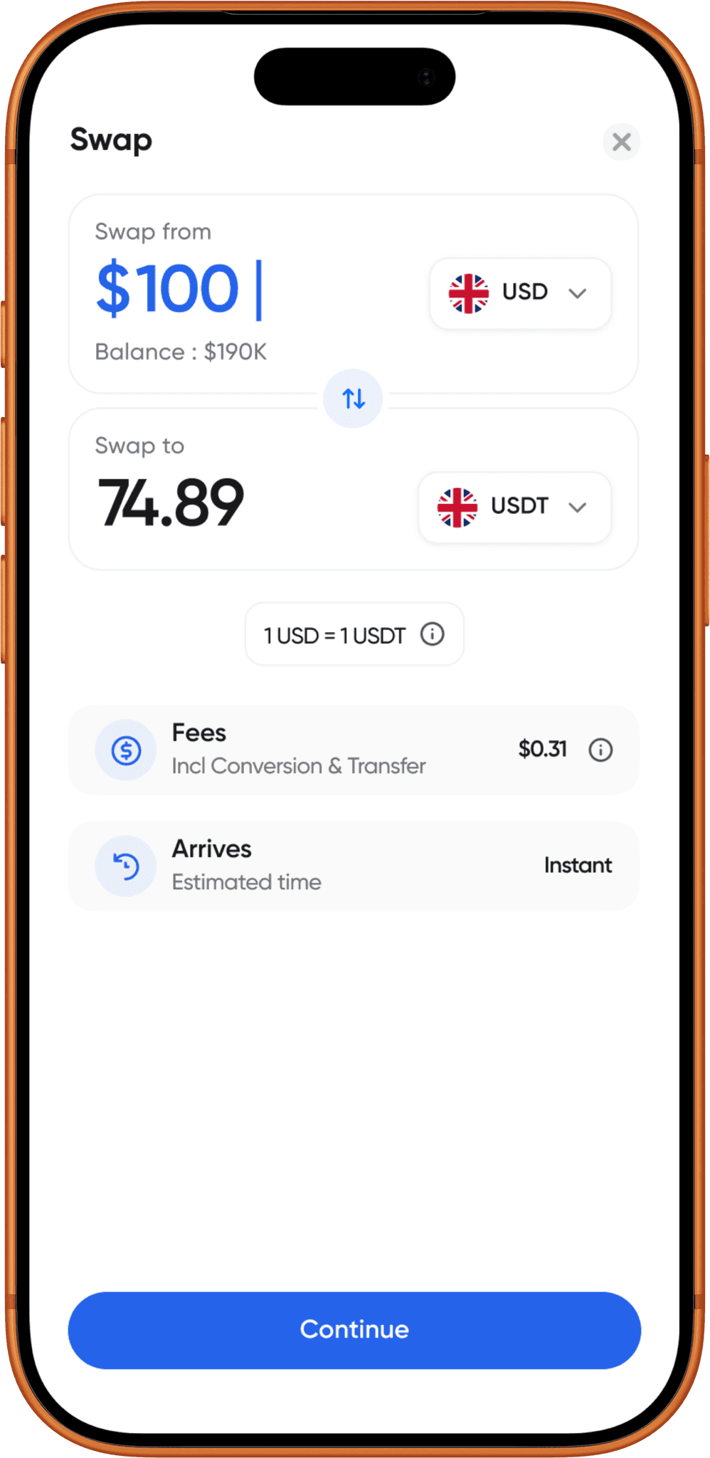 Convert currencies instantly within the app