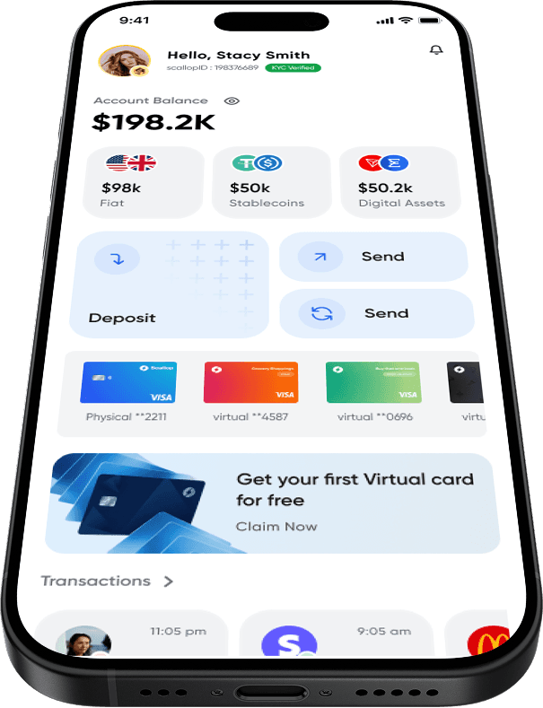 A Scallop account lets you instantly swap between popular fiat currencies, stablecoins, and digital assets. Learn more in our FAQ section.